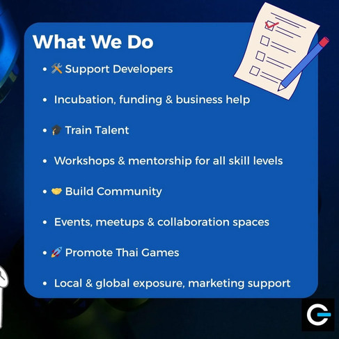 Weâre more than just a co-working space â weâre a dedicated hub and warm community for game developers and creators in Thailand!
